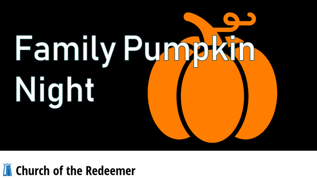 Enjoy an evening together as we do these things: share a meal, carve pumpkins, hear a Halloween story. Costumes are encouraged. This is a potluck in which pumpkin-inspired dishes are encouraged! This event is BYOP: Please Bring Your Own Pumpkin for your family to carve. Redeemer provides the carving instruments. Pro tip: Save time by “gutting” your pumpkin before you come. All are invited.