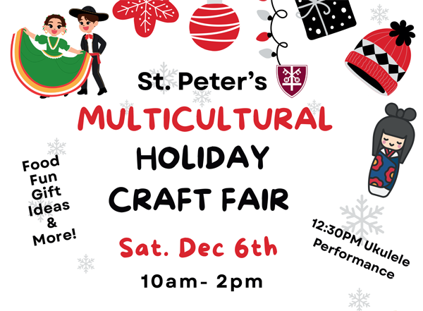 Dec 6 10:00 am - 2:00 pm Multicultural Holiday Craft Fair at St. Peter’s Episcopal Parish St. Peter's, Seattle 1610 S. King St, Seattle Event Details Get Directions